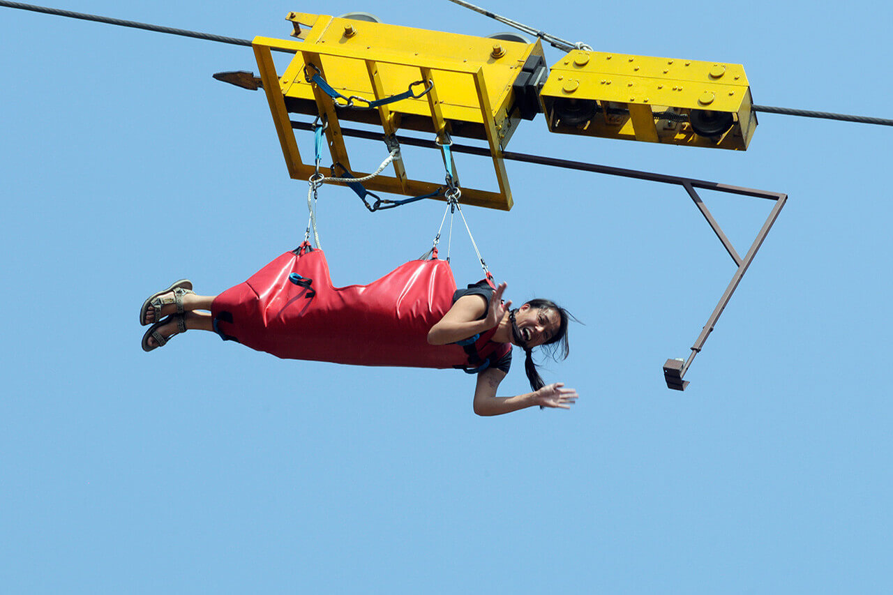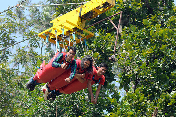Flying fox is a thrilling adventure activity that involves sliding down a steel cable while harnessed in a safety harness. The steel cable is fixed between two points, and participants slide down the cable while suspended in the air.