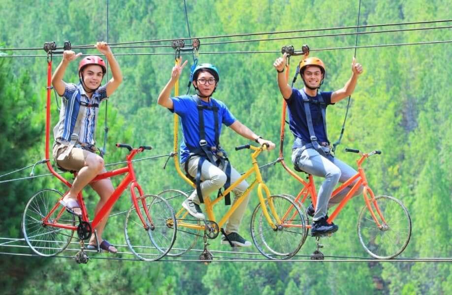 Sky cycling is an adventure activity that involves cycling on a high wire, suspended above the ground, using a specially designed cycle.