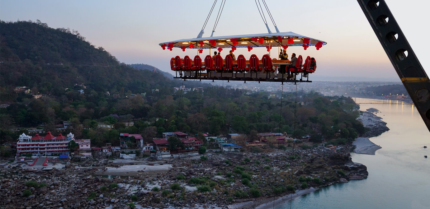 Experience the ultimate combination of thrill, dining, and breathtaking views! Skymax Lounge invites you to embrace an unforgettable adventure 113 meters (370 feet) above ground. This dining experience is the perfect mix of excitement and indulgence, creating lasting memories in the serene environment of Rishikesh.