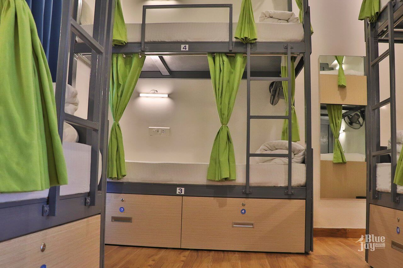 Blue Jay Hostels Rishikesh has a range of rooms to suit different needs and budgets. There are dormitory rooms with shared bathrooms, private rooms with attached bathrooms, and luxury tents with private bathrooms. All the rooms are well-maintained and equipped with basic amenities like comfortable beds, storage lockers, and charging points.